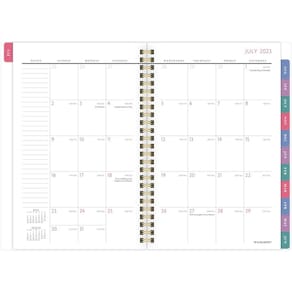 - MESES COM ABAS — Páginas mensais espaçosas e com guias ajudam você a acompanhar seus planos. Blocos diários não controlados, espaço para anotações e calendários de referência passados/futuros para que você possa planejar com antecedência.