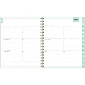 Se você é um profissional que trabalha, mãe em tempo integral, professora ou aluna diligente, é fácil se sentir sobrecarregado e puxado em um milhão de direções. Day Designer for Blue Sky é um sistema simples e fácil criado para ajudá-lo a encontrar equilíbrio, foco e produtividade. Este planejador não é mágico e não pode viver sua vida para você. Mas pode, através de uma estrutura simples e guiada, ajudá-lo a descobrir um foco para a vida intencional. Pode ser uma ferramenta confiável para definir metas, criar um plano e agir todos os dias. Este planejador excepcionalmente construído exala qualidade, elementos de design e produtividade inspirada em um conjunto bem organizado. Ele irá ensiná-lo e guiá-lo com um caminho claro e direções para organizar seu dia, suas tarefas, atribuições e tarefas para alcançar seus objetivos. Este planejador de calendário anual de 8,5 x 11 é ideal para profissionais de negócios, professores, professores, administradores, estudantes ou qualquer pessoa envolvida na educação. Você se sentirá mais organizado e responsável por sua agenda agitada, enquanto carrega este planejador Day Designer para Blue Sky. O vibrante padrão Secret Garden Mint com detalhes em folha de ouro fará uma declaração de moda sutil com amigos e colegas ao seu redor. Um dia bem desenhado é uma vida bem vivida!