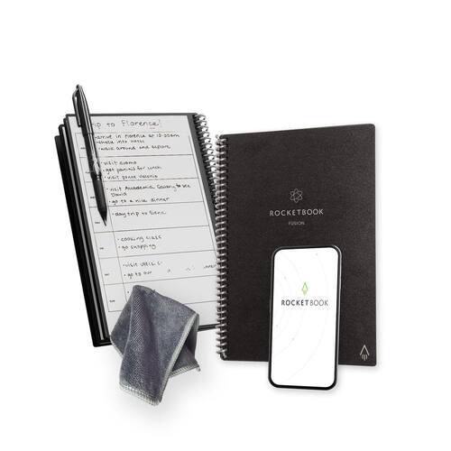 Rocketbook Planejador de produtividade Fusion reutilizável sem data, tamanho executivo 15 x 21 cm, preto - metas, calendário mensal e semanal, lista de tarefas diárias, páginas pautadas e pontilhadas - Planeje, digitalize, apague e replaneje: escreva listas de tarefas, notas e objetivos em papel reutilizável com a caneta Pilot Frixion. Digitalize planos usando o aplicativo Rocketbook e organize na nuvem. Quando terminar, basta limpar as páginas com um pano úmido e reutilizar. - 7 modelos de página versáteis: planeje a vida e o trabalho com calendário mensal e semanal, lista de tarefas, rastreador de objetivos, lista de ideias e páginas de caderno pontilhadas e forradas. Diversificada para tudo, desde gerenciamento de projetos até rastreamento de atividades físicas e planejamento doméstico. - Ativado para aplicativo para organização digital: o aplicativo Rocketbook permite que você escaneie e faça upload de seus planos e listas diretamente para plataformas de nuvem como Google Drive, Dropbox, OneNote etc. A conexão com o aplicativo garante que suas anotações sejam acessíveis de qualquer lugar. - Materiais duráveis e de alta qualidade: papel reutilizável premium, encadernação espiral durável e uma capa à prova d'água. O design flexível permite que ele fique plano para sessões de escrita e planejamento confortáveis, esteja você em casa, na escola ou no escritório. - Ecológico e reutilizável: substitui a necessidade de planejadores de papel tradicionais. Projetado para sustentabilidade, combinando a conveniência de 7 tipos de página reutilizáveis com a capacidade de digitalizar e apagar, permitindo que você simplifique tarefas e reduza o desperdício.