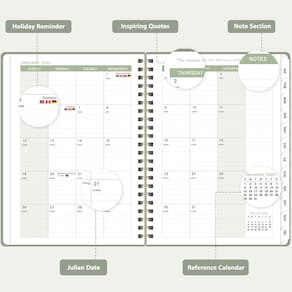 O que você recebe? Um planejador de 12 meses vai de janeiro de 2025 a dezembro de 2025 Especificações Marca: VALCOME Tamanho: 16 cm x 21 cm Cor: verde Vantagens 1. Cobertura estendida: abrangendo 12 meses, de janeiro de 2025 a dezembro de 2025. 2. Marcações claras: inclui feriados e datas julianas 3. Calendários de referência: dois calendários de referência para acesso rápido. 4. Tamanho perfeito: 16 cm x 21 cm 5. Seção de notas adicionais. 6. Papel de alta qualidade: feito com papel resistente a sangria para garantir uma escrita suave. 7. Descanso profissional: capa frontal planejadora | cantos de proteção | Visão geral anual | contatos | Informações de referência rápida | abas internas mensais | feriados | Páginas semanais e mensais | Encadernação com fio duplo | Bolso interno | Fecho elástico Cenário aplicável Uso no escritório, escola e acadêmicos, planejamento doméstico, fitness e definição de metas, negócios e varejo, presentear, planejamento de viagens e férias, etc. - Planejador 2025: a agenda (15 x 21 cm) cobre 12 meses de janeiro a dezembro de 2025, apresentando uma página de planejamento semanal e mensal. Também inclui páginas adicionais, como uma visão geral anual, datas importantes e uma página de contatos para ajudar você a manter seus horários, prioridades e prazos em ordem. - Planejamento mensal: a agenda apresenta calendários de referência do mês anterior e seguinte, lembretes importantes de feriados para planejamento de longo prazo, blocos de escrita diários e uma seção de notas dedicada para detalhes adicionais. Com guias mensais convenientes e citações motivacionais, foi projetado para inspirar e ajudar a organizar sua vida, trabalho ou estudo. - Planejamento semanal: as páginas semanais oferecem amplo espaço de escrita para um planejamento mais detalhado, facilitando o acompanhamento de seus compromissos, listas de tarefas e anotações. - Estilo e função: esta agenda durável possui papel grosso, uma capa dura resistente à prova d'água, abas mensais, encadernação de fio duplo, bolso interno e um fecho elástico para conveniência. - Presente prático: estilo sangramento com funcionalidade, esta agenda 2025 é um presente perfeito para ajudar a família, amigos ou colegas a se manterem organizados durante todo o ano.