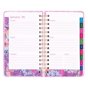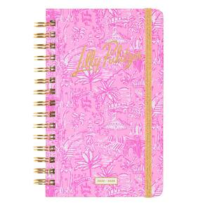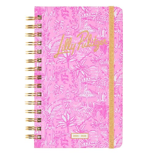 Faça planos impressos com a agenda de capa dura média de 2025-2026 da Lilly Pulitzer no Palm Beach Playground. Projetado para mantê-lo organizado sem esforço de agosto de 2025 a dezembro de 2026, esse planejador é perfeito para monitorar férias, compromissos, brincadeiras e brunch com seus melhores amigos. Com os interiores artísticos exclusivos da Lilly pintados à mão e detalhes dourados cintilantes na capa, ele combina praticidade com um toque de charme tropical. Medindo 5 x 8,25 polegadas (12,7 x 21 cm), esta agenda compacta e funcional cabe perfeitamente em sua bolsa, oferecendo todo o espaço de que você precisa para se manter em dia com sua agenda. Com uma resistente encadernação em espiral dourada e fecho elástico, ele mantém tudo seguro, enquanto duas páginas de adesivos, um bolso interno reforçado de dupla face e seções dedicadas para anotações, um diário de viagem, datas comemorativas e endereços tornam o planejamento ainda mais divertido. Se você está organizando sua rotina diária ou sonhando com sua próxima aventura, essa agenda é tão vibrante quanto útil.