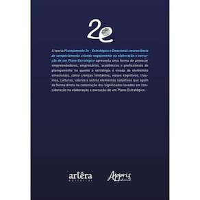 A teoria Planejamento 2e – Estratégico e Emocional: neurociência do comportamento criando engajamento na elaboração e execução de um Plano Estratégico apresenta uma forma de provocar empreendedores, empresários, acadêmicos e profissionais de planejamento no quanto a estratégia é eivada de elementos emocionais, como crenças limitantes, vieses cognitivos, traumas, culturas, valores e outros elementos subjetivos que agem de forma direta na construção dos significados levados em consideração na elaboração e execução de um Plano Estratégico. Marca: Não Informado