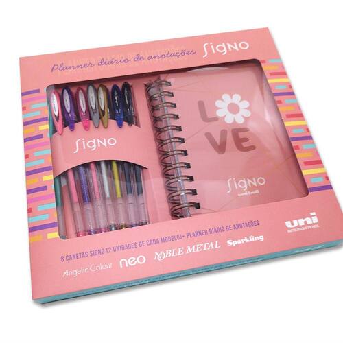 - OITO Canetas Gel Signo Uni-ball, 2 unidades de cada linha
