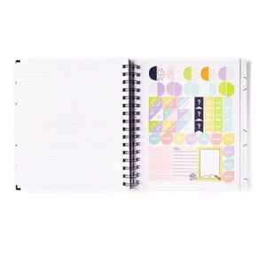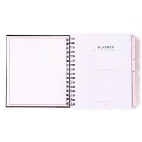 Material: Papel offset, papel paraná e papel couchê adesivo Quantidade de folhas: 88 folhas offset 90g/m, 12 divisórias de folhas offset 180g/m com acabamento em poliéster, 2 páginas de adesivo e 1 bolso em PVC Dimensões: 20,7 x 22 x 2,5 cm Conteúdo: 1 planner permanente com fechamento em elástico
