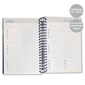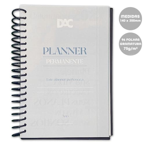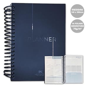Planner permanente a5 com espiral dac vision azul 96fls 75g o planner permanente dac vision é a ferramenta perfeita, pois une as funcionalidades, das agendas comuns com espaços para as atividades diárias e funções diversas, que ajudam na organização de objetivos e planejamento dos compromissos. As páginas foram criadas para que você mantenha o foco nas suas metas, sem desperdiçar seu tempo com informações sem relevância. Esse planner é ideal para você que quer organizar seus dias para que sejam mais produtivo e que tenha mais foco nas atividades contém espaço para: - controle financeiro; - desejos para o ano; - contatos; - contas bancárias; - login e senhas; - aniversários; - livros para ler; - séries para assistir; - minhas viagens; - melhores momentos do ano. Características: - formato: a5 14 x 20 x 2 cm ; - folhas internas: papel off-set 75g/m; - planner com 96 páginas personalizadas e espiral plástico; - validade indeterminada; - referência: 4228. -imagens meramente ilustrativas- atenção: a cor do produto pode variar de acordo com o monitor atenção: o fabricante pode alterar a cor de alguma parte do produto sem aviso prévio. Ean: 7908689902543