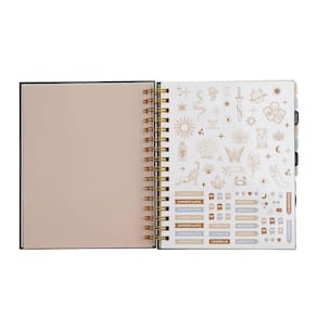 Planner Permanente Celestial Delicado e encantador, nosso Planner Permanente Celestial chegou para trazer mais organização para o seu dia a dia! Super presenteável e perfeito para você agilizar a sua rotina, ele foi todo pensado para te ajudar a planejar seus próximos passos, organizar seus compromissos e tomar nota de tudo o que importa, sejam suas metas, seus gastos mensais, seus hábitos e seu tempo livre para descanso e lazer.