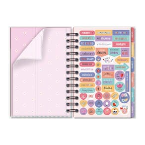 Capa dura, miolo com 210 páginas (105 folhas), formato 11,8 cm x 17,5 cm, papel offset 90 g/m2 (a tinta das canetas não passa para o outro lado), encadernação em wire-o e elástico para fechamento. Acompanham envelope para documentos, marcador de páginas, folhas de adesivos, 12 divisórias mensais. Conteúdo: calendário, dados pessoais, mais sobre mim, minhas metas, visão anual, ler/assistir/visitar, minhas viagens, cuide-se (bem-estar), visão mensal, inspirações para o mês, visão da semana, monitoramento de hábitos, minhas finanças e balanço do ano.