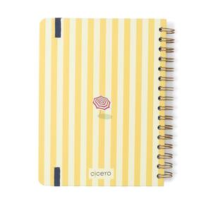 Este Planner tem capa dura, cantos arredondados, elástico para fechamento e encadernação em Wire-O (espiral duplo).