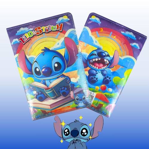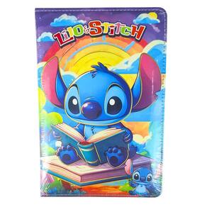 • Design Exclusivo Stitch: A capa é revestida em courino de alta qualidade, com uma estampa vibrante e cheia de personalidade, garantindo um visual encantador e durabilidade.