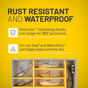 - A tecnologia Rustrictor proporciona 360 graus de prevenção de ferrugem | O sistema EZ Label oferece identificação rápida e personalizável do conteúdo | A tampa de policarbonato transparente DuraView é durável e permite que você veja e encontre equipamentos facilmente
