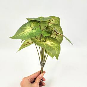 A Planta Artificial Caladium Verde é o toque de charme e frescor que faltava na sua decoração. Com 26 cm de altura, folhas exuberantes e acabamento realista, essa folhagem é perfeita para composições delicadas, vasos decorativos, estantes ou como complemento em arranjos naturais e sofisticados. Seu visual tropical e vibrante traz vida aos ambientes, enquanto sua estrutura leve e flexível permite uma infinidade de usos decorativos - tudo isso sem precisar de cuidados ou manutenção.