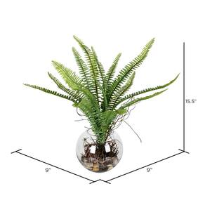 Vickerman Samambaia verde artificial para ambientes internos de 39,36 cm – Vaso de vidro transparente – Folhagem realista de poliéster durável – Sem manutenção