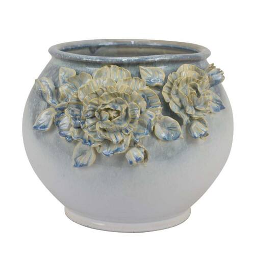 Plantador Benjara Rox Accent, design de apliques florais, cerâmica branca de 12 polegadas -