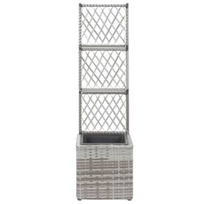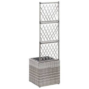 vidaXL Treliça de cama elevada com 1 vaso removível casa jardim flores ervas conjunto caixa suporte para plantas trepadeiras 30x30x107cm Poly Rattan cinza quadrado