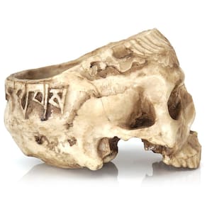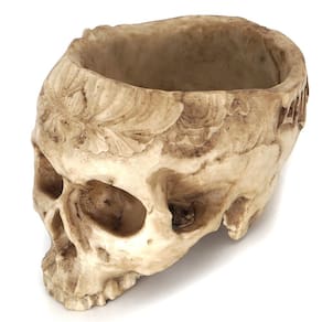 Material: Resina Peso: 600 g Tamanho: 18x11,5 x 13 cm Design de caveira gótica — Vaso de flores realista em forma de caveira com detalhes esculpidos, adicionando um toque assustador e artístico à sua decoração de plantio. Material de resina durável — Feito de resina premium, leve, forte e resistente a rachaduras ou desbotamento para uso duradouro. Perfeito para suculentas e cactos — Vasos ideais para suculentas, cactos e pequenas hortaliças, criando uma exibição gótica ou de Halloween exclusiva. Decoração de Halloween e festas — Ótima peça central para Halloween, eventos com temas de terror ou estilo doméstico gótico, adequada para decoração interna e externa. Tamanho portátil — Dimensões 18x11,5 x 13 cm, peso 600 g, plantador de mesa perfeito para escritório, varanda, pátio ou como suporte para decoração de palco ou filme.