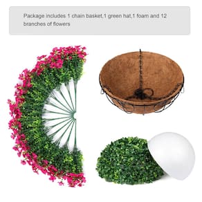 Vaso de flores artificiais com cesta suspensa para decoração de casa, margarida com folhas de eucalipto ao ar livre e jardim interno, cesta de metal com forro de coco com planta sintética - Lindas flores penduradas: as lindas flores HyeFlora penduradas em uma cesta são uma maneira simples e elegante de decorar e adicionar um pouco de beleza natural a qualquer espaço. - Materiais: A linda cesta de flores de seda falsa é composta por uma cesta de vime com correntes de metal e 12 ramos de flores artificiais de buganvílias. Cada galho suspenso tem garfos de flores e folhas verdes. Especificações: o tamanho após a montagem é de aproximadamente 39,9 cm x 39,9 cm x 48,3 cm (C x L x A); a cesta mede 30,5 x 30,5 x 15 cm (C x L x A) e o comprimento da corrente é de 35 cm. - Cestas artificiais suspensas com flores fornecem uma opção de baixa manutenção para adicionar beleza e cor a qualquer espaço, com uma variedade de opções de flores realistas disponíveis. - Boa qualidade: a cesta suspensa e as margaridas artificiais com folhas de eucalipto foram feitas de material de boa qualidade que não requer manutenção após a montagem. É resistente aos raios UV e não desbota, resistente o suficiente para qualquer clima. Sem necessidade de irrigação. Fica cheia e bonita durante toda a estação. - Decoração vegetal artística: a cesta de flores suspensa falsa parece real e elegante, tornando-a a cesta suspensa perfeita para sua casa, pátio, varanda, jardim, interior e exterior. Ela floresce o ano todo e adiciona uma sensação de primavera à sua casa.