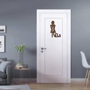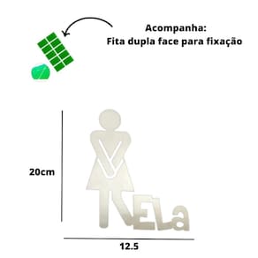 Palaca sinalização para banheiro, Feminino Ela 3mm natural, mdf 3mm cortado a laser, medindo 18 centimentros de altura por 14 centimetros de largura, acompanha fita dupla face, este anuncio em especifico é referente a unidade Feminino Ela 3mm natural com a cor natural, cor mdf cru podendo ser personalizado pelo cliente após a compra.