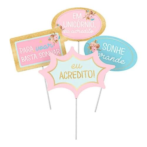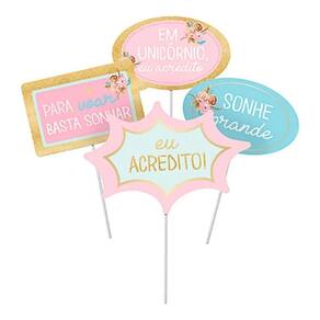As Plaquinhas Divertidas tem se tornado cada vez mais comuns em todos os tipos de festas pois ficam ótimas no momento de tirar as fotografias da festa utilizando frases super divertidas e entrando no clima da festa para depois arrasar postando elas. O Kit Plaquinhas Divertidas do Unicórnio em especial combina com a Decoração Unicórnio!
