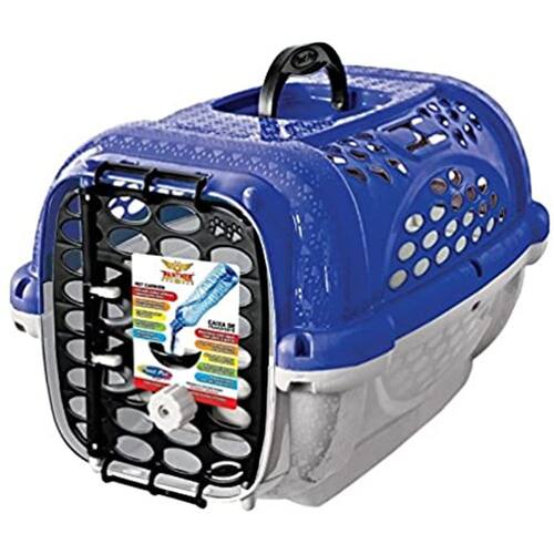 Plast Pet Caixa Transporte Panther Nº2 Azul - Indicada para cães e gatos; - Indicado para pets até 10 kg; - Segurança, qualidade, design e tecnologia; - Nível de resistência altíssimo que pode ser utilizada no carros, voos e onde mais desejar; - Garante a segurança e o conforto do seu pet; - Confortável e segura; - Alça com desenho ergonômico, suporte duplo para passagem de cinto de segurança; - Fácil montagem e a parte inferior não é vazada para melhor retenção do xixi; - A porta possui trava de segurança; - Área aberta do teto proporciona mais ventilação; - Modelos 3 e 4 contém POM na alça, garantindo o transporte de cães mais pesados; - Acompanha bebedouro; - Disponível nos tamanhos 1, 2, 3. Tamanho N2 - Profundidade: 47cm /Largura: 34cm / Altura: 30cm
