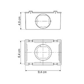 Ele vem com quatro tampões, e quando destacada a parte central dos tampões, funciona como sistema de travamento dos acessórios e proteção do fio condutor.
