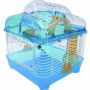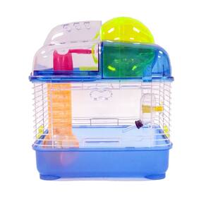 YML Gaiola de rato de hamster anão de plástico transparente com bola na parte superior, azul