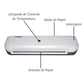 Características Técnicas:Plastifica somente 0,3 (75micra) e 0,5 (125micra).Largura Máxima de Plastificação: 235mm.Lâmpada de Controle de Temperatura.Cilindros de Aquecimento: 2 Cilindros.Velocidade Laminação: 300mm/min.Tempo de Aquecimento: 3 a 5 min.Laminação: Quente.Voltagem: 110V.Peso: 0,700Kg.