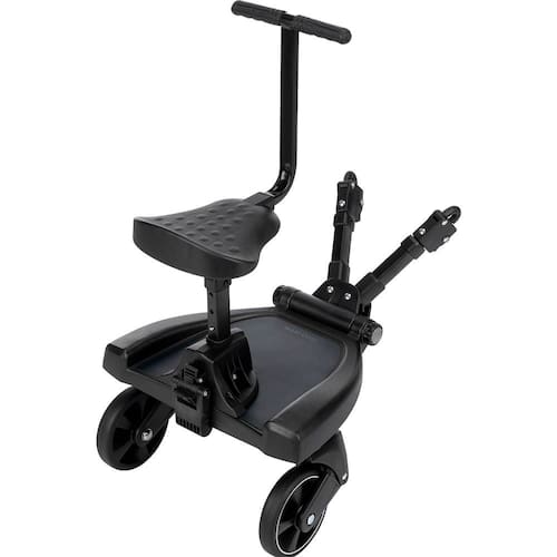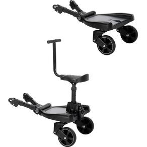 Este produto é especial por sua adaptabilidade à maioria dos carrinhos, permitindo que a criança escolha entre estar sentada ou em pé com segurança. Seu assento com encosto e apoio lateral proporciona maior conforto, enquanto as rodas com travas garantem estabilidade durante o uso.