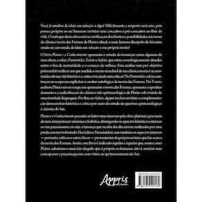 Você já mudou de ideia em relação a algo? Dificilmente a resposta será não, pois parece próprio ao ser humano revisitar seus conceitos e pré-conceitos no fluir da vida. O enfoque desta obra está na verificação dos limites e possibilidades em torno da clássica teoria das Formas de Platão: afinal, o mais famoso discípulo de Sócrates muda ou não muda de ideia em relação a sua própria teoria? O livro Platão e o Conhecimento apresenta o estudo da transição entre algumas de suas obras, a saber, Parmênides, Teeteto e Sofista, que estão cronologicamente situadas entre o fim da maturidade e o começo da velhice. Esta análise tem por objetivo primordial verificar em que medida a versão standard de sua clássica teoria é reconstruída sob um viés histórico e crítico (ou ainda autocrítico). No Parmênides, tal reconstrução se ocupa em explicitar o caráter ontológico da teoria das Formas. No Teeteto, embora Platão não se ocupe em apresentar a teoria das Formas, apresenta o aprofundamento e a radicalização do clássico viés epistemológico de Platão sob a tutela de uma inusitada linguagem. Por fim, no Sofista, alguns trechos revelam a complementação dessa revisão histórica e crítica por meio do estudo de questões epistemológicas à clareira do Ser. Platão e o Conhecimento permite ao leitor uma imersão pela obra platônica por meio de uma interpretação sistêmica e holística, abrangendo os aspectos históricos externos ao seu pensamento, ou seja, a herança que recebe das discussões realizadas por seus predecessores (sobretudo, Heráclito e Parmênides), mas também os aspectos internos — portanto, críticos e autocríticos — provenientes da própria revisão que faz acerca da teoria das Formas. Assim, este livro é indicado àqueles e àquelas que, assim como Platão, admiram o exercício daquilo que é próprio ao humano, isto é, revistar suas concepções e preconcepções com vistas ao aprimoramento do Ser.