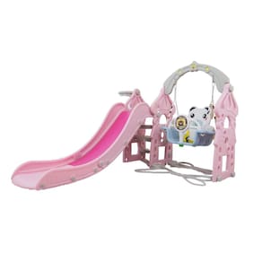 Playground Infantil 3 em 1 Plástico Escorregador Balanço Cesta Lazer Brinquedo Rosa Brinqway Bw-218
