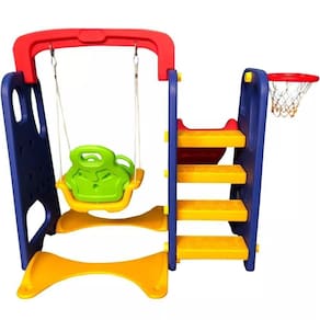 Playground Importway 3 em 1 Escorregador Balanço Cesta Basquete O Playground 3X1 da Importway possui balanço, escorregador e cesta de basquete combinados em um único brinquedo, pode se usar separadamente ou simultaneamente, a criançada vai pirar com tanta diversão. Seus materiais são de ótima qualidade e o produto possui selo do Inmetro, segurança garantida para os seus pequenos.