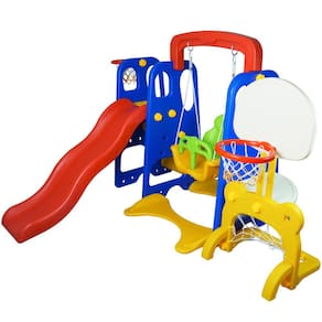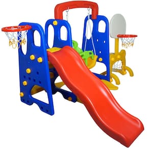 Playground Infantil 5 em 1 Escorregador Balanço Cesta Basquete Gol Brinquedo Importway BW-050