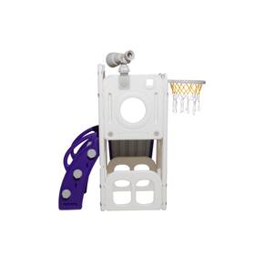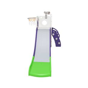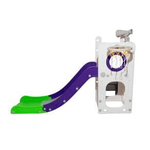 Com 1 torre que inclui escorregador, cesta de basquete, luneta e guarda-brinquedos.