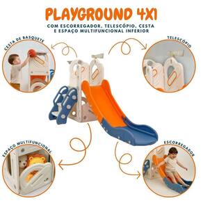 Vem descobrir com a gente essa maravilha que é esse playground infantil da Pluggei Select Disponível nas cores bege e laranja/azul, ele é PERFEITO para o seu pequeno brincar, contando com 4 atividades diferentes que podem ser realizadas A criança pode escolher se divertir no escorregador, jogando basquete, guardando brinquedos na cesta ou olhando através do telescópio, estimulando assim sua criatividade, imaginação e tomada de decisões.