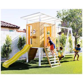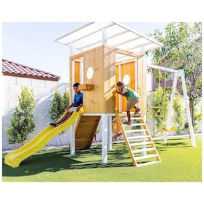 PAREDE DE ESCALADA, BALANÇOS, ESCORREGADOR, CASINHA E MAIS: O conjunto Avenlur é repleto de opções de brincadeira! Ele conta com uma casinha de brinquedo com janelas integradas e paredes fechadas, oferecendo sombra e proteção contra o sol, além de permitir boa ventilação e fácil supervisão. A parede de escalada é um desafio empolgante que estimula a atividade física e a coordenação motora. O escorregador de 1,80 m proporciona uma diversão emocionante, enquanto a viga de balanço com 2 posições e balanços de cinto resistentes, com correntes de corda, são perfeitos para mãos pequenas.