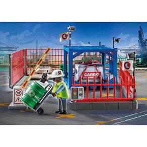 Se o transporte da carga não puder continuar imediatamente, a mercadoria fica temporariamente no depósito de carga. Sejam contêineres, toneladas ou sacos - tudo é armazenado com segurança aqui. Um novo contêiner acaba de chegar. Ele deve ser armazenado temporariamente por alguns dias. Por razões de segurança, o estivador também prende o contêiner à placa de base com uma corda. Agora nada pode escorregar. O playset inclui uma figura PLAYMOBIL, elementos de cerca, uma barreira, um módulo de contêiner e muitos outros extras.