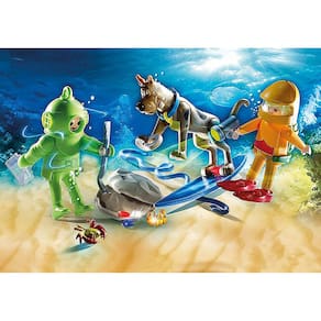 Você pode tirar a máscara do fantasma! Scooby-Doo na prancha e Fred com roupas de mergulho que você pode colecionar. Histórias sobre o espírito do Capitão Cutler levam Scooby-Doo e Fred para o fundo do mar. Fred tem equipamento especial de mergulho e Scooby segue o espírito flutuante em sua prancha de surfe. Ele está tentando obter suas joias escondidas. Juntos, Scooby e Fred irão capturar o fantasma para revelar seu segredo. Pode-se tirar a máscara da figura e revelar a verdadeira identidade do mergulhador. O conjunto inclui Scooby-Doo, Fred, o fantasma do Capitão Cutler, uma carta fantasma, uma prancha de surf, um tesouro, equipamento de mergulho e outros acessórios.