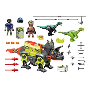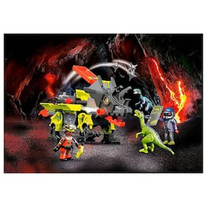Descrição: Juntamente com os 'Mineiros', a Comet Corp. A Equipe Dino Rise com a ajuda de um robô-dino tecnológico especialmente construído e blindado. A mais nova máquina de guerra da Comet Corp está se aproximando. Com este robô, Ludmilla e Ralph tentam superar o poder animal dos dinossauros com pura tecnologia. O Robo-Dino está armado com dois mísseis e uma poderosa catapulta. Ele pode rapidamente e facilmente se esconder em sua armadura e, se necessário, retirá-los prontos para a batalha. Acima de tudo, a catapulta nas costas, com a qual ele pode lançar bolas cravadas no ar em um piscar de olhos, é extremamente perigosa. Mas o estrategista-chefe Jaden da equipe Dino Rise não tem medo de um robô-dino e fica no caminho da máquina de combate. O conjunto inclui Jaden do Team Dino Rise, um mineiro, dois velociraptors, um dinossauro robótico, dois canhões de três tiros, bolas cravadas e muitos outros extras para uma emocionante luta de dinossauro contra a máquina. Características: Marca: Sunny Brinquedos Referência: 2297 Idade recomendada: A partir de 4 anos Pilhas Inclusas? Tipo de Pilha/Bateria Não necessita de pilhas Possui Luzes: Não Possui Sons: Não Dimensões aproximadas da embalagem: 18,6 x 34,7 x 12cm (A x L x C) Garantia: 3 meses a contar da emissão da procedência garantida Embalagem: Conteúdo da embalagem: Contém: 1 'Miner', Jaden e 2 Velociraptors e a mais nova máquina da equipe. Certificado Inmetro: REGISTRO 007649/2020 BRI-1 Produtos de decoração não inclusos. Imagens meramente ilustrativas. As cores dos objetos podem sofrer alterações devido a luminosidade, configurações do monitor e até mesmo a percepção do usuário.