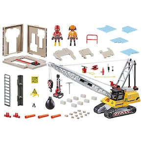 Para operários de construção ocupados: Escavadeira a cabo Playmobil com bola de demolição e garra, bem como 1 módulo de casa, 1 especialista em demolição, 1 motorista de guindaste e muito mais. Para dramatização. Escavadeira com cabine articulada, estrutura giratória 360 ° e trava para travamento do braço da escavadeira, módulo de casa "casa de demolição" com função de explosão e muito mais. Conteúdo da caixa: 1 x Escavadora a cabo PLAYMOBIL com seção de construção; Conjunto de bonecos de 93 peças com instruções: 1 escavadeira, 2 figuras, 90 peças.