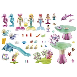 Descrição: Junte-se às sereias no seu paraíso no fundo do mar. Aqui, tudo está cheio de vida. Enquanto os bebés vão no carrinho, uma pequena sereia nada feliz com os golfinhos. Após a caminhada, os mais pequenos brincam com o arco de jogo para bebés na plataforma de coral. Dois cavalos-marinhos nadam e divertem-se com o jogo. Características: Marca: Sunny Brinquedos Referência: 3332 Idade recomendada: A partir de 4 anos Pilhas Inclusas? Tipo de Pilha/Bateria Não necessita de pilhas Possui Luzes: Não Possui Sons: Não Dimensões aproximadas da embalagem: 28 x 45 x 11cm (A x L x C) Garantia: 3 meses a contar da emissão da procedência garantida Embalagem: Conteúdo da embalagem: Três sereias PLAYMOBIL, uma figura infantil, dois bebés, duas carruagens marítimas, duas plataformas, um escorrega infantil, dois cavalos marinhos, dois golfinhos, uma moreia e muitos outros extras encantadores. Certificado Inmetro: REGISTRO 007649/2020 BRI-1 Produtos de decoração não inclusos. Imagens meramente ilustrativas. As cores dos objetos podem sofrer alterações devido a luminosidade, configurações do monitor e até mesmo a percepção do usuário.