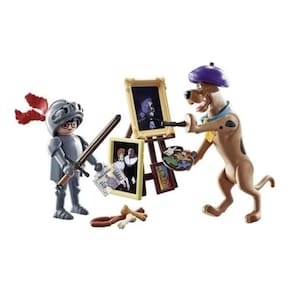 O conjunto inclui scooby-doo, cavaleiro negro, carta fantasma, a armadura mal-assombrada do cavaleiro e acessórios de pintura. Total de 28peças