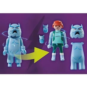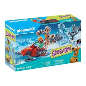 Desça a montanha correndo no SCOOBY-DOO! Aventura com o Snow Ghost! Shaggy e Scooby-Doo pulam no snowmobile para escapar do vilão da neve invernal enquanto ele os segue em esquis! Scooby fica na parte de trás do snowmobile com seu boné de neve para manter as orelhas aquecidas, enquanto Salsicha desce freneticamente a encosta para longe do fantasma! Desmascarar o fantasma para revelar sua verdadeira identidade e coletar seu cartão fantasma, que pode ser examinado usando o leitor no SCOOBY-DOO! Mystery Machine ou SCOOBY-DOO! Adventure in the Mystery Mansion (70286 e 70361 - cada um vendido separadamente).
