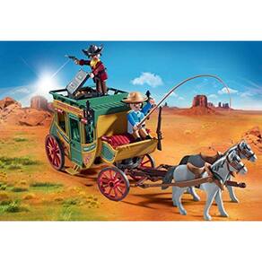 Viaje em uma aventura ocidental com o Stage. Suba até a caixa do motorista para dirigir os cavalos e esteja a caminho! Guarde facilmente todos os seus pertences no porta-malas, mas fique de olho no seu ouro. Parece que um ladrão pode estar atrás dele! Quando precisar parar, retire os cavalos da diligência. Remova o telhado para acessar o interior e as figuras do assento dentro para a viagem. O conjunto inclui diligência, duas figuras, dois cavalos, caixa de dinheiro, ouro, bagagem e outros acessórios. Recomendado para maiores de quatro anos. Aviso. Sufocando Hazard. Partes pequenas. Não para crianças menores de 3 anos.