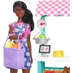 — As crianças podem explorar um mundo de diversão nas compras com o conjunto de brinquedos Barbie Farmers Market!