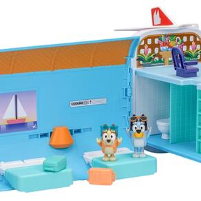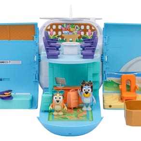 Voe alto nas férias dos sonhos com o Playset Avião 3-em-1 Transformável da Bluey! Este incrível playset da Bluey se transforma facilmente em três opções divertidas: começa com um avião, depois pode virar um resort e também um barco. Ele vem com duas Bonecos exclusivas - Bluey com chapéu de piloto e óculos de sol, e Bingo com seus óculos escuros - além de 15 acessórios para criar as melhores férias de todas! Abra o avião e descubra um playset gigante de 70 centímetros de largura, com dois níveis e várias áreas para explorar, como o lobby do hotel, um quarto e uma praia. A cabine do avião se transforma em um barco para ainda mais aventuras! Todo o playset ganha vida com mais de 25 sons e frases do programa, e inclui um "Passaporte Australiano" e uma folha de adesivos para personalizar. O Playset Avião 3-em-1 Transformável da Bluey é perfeito para todas as Bonecos da Bluey do seu filho! As crianças vão adorar recriar os momentos mais memoráveis do programa de TV da Bluey com este adorável brinquedo.