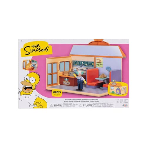 Descrição: O Diorama Simpsons Krusty Burger captura os detalhes do restaurante Krusty Burger inspirado na icônica série animada. Apresentando o icônico Krusty Burger de um lado e o restaurante do outro. Compatível com todas as figuras e acessórios em escala de 2,5 polegadas. Oferece vários recursos divertidos e interativos, como o contador de dinheiro ativado por botão ou a mesa interativa, permitindo aos fãs recriar cenas e momentos clássicos do show. Este conjunto de diorama vem com uma variedade de acessórios, incluindo uma figura de Krusty, o Palhaço, em escala de 2,5 polegadas, uma mesa, um caixa eletrônico e um conjunto de hambúrgueres Krusty, permitindo que os fãs recriem o cenário icônico da sala de estar. Colecione toda a ampla variedade de brinquedos e itens colecionáveis ??inspirados nos Simpsons com este Diorama de Sala de Estar. Características: Marca: Sunny Brinquedos Referência: 4453 Idade recomendada: A partir de 3 anos Pilhas Inclusas? Tipo de Pilha/Bateria Não necessita de pilhas Possui Luzes: Não Possui Sons: Não Dimensões aproximadas da embalagem: 18,6 x 31 x 7,6cm (A x L x C) Garantia: 3 meses a contar da emissão da procedência garantida Embalagem: Conteúdo da embalagem: 1 Playset e 1 Boneco Certificado Inmetro: REGISTRO 011297/2023 Produtos de decoração não inclusos. Imagens meramente ilustrativas. As cores dos objetos podem sofrer alterações devido a luminosidade, configurações do monitor e até mesmo a percepção do usuário.