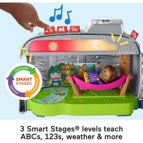 - 3 níveis de aprendizagem Smart Stages ensinam o alfabeto, contando de 1 a 10, clima, estações e rotinas diárias