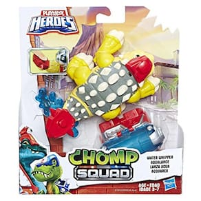 Pequenos exploradores podem descobrir um mundo de dinossauros com as figuras do Playskool Heroes Chomp Squad! Tamanho certo para mãos pequenas, as crianças podem fingir que combatem incêndios grandes e pequenos com o Water Whipper! Abra o tanque de armazenamento nas costas da figura do Chicote de Água e remova o projétil de água. Carregue o projétil na cauda da figura do Water Whipper e lance-o pelo ar! Pique, pise e salve o dia! Para ainda mais emoção, os pais podem procurar episódios animados de Chomp Squad no YouTube em 2018! Playskool Heroes, Chomp Squad e todos os personagens relacionados são marcas registradas da Hasbro.
