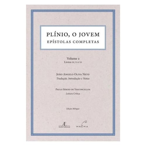Plínio, o Jovem – Epístolas Completas Vol. 2 (Livros IV, V e VI) Damos continuidade neste volume 2 à empresa de publicar em português os quatro volumes de todo o epistolário de Plínio, o Jovem, em edição bilíngue e anotada, o que ocorre pela primeira vez. Ainda que nas epístolas ocorram situações e personagens que sabemos ser importantes na administração de Roma, quem comparece no volume e apresenta elemento diferencial são eventos e personagens menores, mas não menos importantes, em geral ausentes daqueles gêneros e autores: vemos então o afeto que Plínio nutre pela jovem esposa, conhecemos um escravo doente, conhecemos um amigo que Plínio quer recomendar, lemos o elogio que faz de jovens no início da carreira, contemplamos a importância das recitações privadas e a atividade poética de Plínio, lemos o elogio de amigos, amigas e escritores bem como a demonstração de luto pela doença e morte de algum deles e ao lado de tudo isso (por que não dizer?) lemos muitos faits divers, como um caso de adultério, o suicídio de um casal de idosos e um dito cômico. A única exceção, porém notabilíssima, são as famosas “epístolas vesuvianas”, em que Plínio descreve a erupção do Vesúvio em 79 d.C. e a catástrofe que se abateu sobre Pompeia e adjacências. As epístolas de Plínio não nos apresentam enfim apenas matéria diferente do que se lê na poesia e na historiografia, mas oferece-nos matéria complementar a elas. Coleção Clássicos Comentados Edição Bilíngue: Latim/Português Tradução, Introdução e Notas: João Angelo Oliva Neto Leitura Crítica: Paulo Sérgio de Vasconcellos Coedição: Editora Mnema