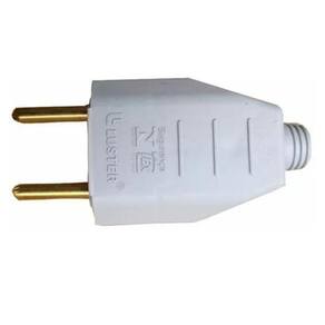 Pino macho 2 polos Plugue 10A 250V Luster Branco Descrição do Produto Plugue macho 10A - 250V BCO Peça fabricada em termoplástico de engenharia Produzido em plástico poliamida nylon anti-chama Componentes condutores e pino maciço em liga de cobre Marca: LUSTER Ean: 27898018510133