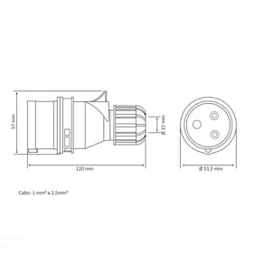 O Plugue Móvel Industrial 2P+T 16 A 380-415 Vca 9 H Tramontina é a escolha certa para as instalações elétricas de pavilhões e indústrias. Ele possui confecção em termoplástico auto extinguível, material isolante e de alta resistência mecânica. Ele é muito fácil de instalar, pois conta com sistema de desmontagem simples: você só precisa liberar a trava com o auxílio de uma chave de fenda e girar para desmontar. E o melhor, o presa-cabo integrado é muito fácil de ajustar e dispensa o uso de ferramentas, o que garante melhor fixação do cabo e vedação. Os melhores produtos para seus projetos, você só encontra com Tramontina! Orientações Atende a norma IEC 60309.Intercambiável com outros produtos desenvolvidos em conformidade com a norma IEC 60309. Possui grau de proteção IP44.Temperatura de utilização -25 °C a 40 °C. Características Gerais EAN13 7891435942644 DUN14 17891435942641 NCM 8536.69.10 Peso Líquido 0,1100 kg. Peso Bruto 0,1200 kg. Metragem 0,000227 m³. Dimensões Embalagem (Compr. X Larg. X Alt.) 123x 43x 43 mm. Dimensões Produto (Compr. X Larg. X Alt.) 125x 43x 43 mm. Observações É importante que seja instalado por profissional habilitado. Antes de instalar, desligue a energia elétrica.